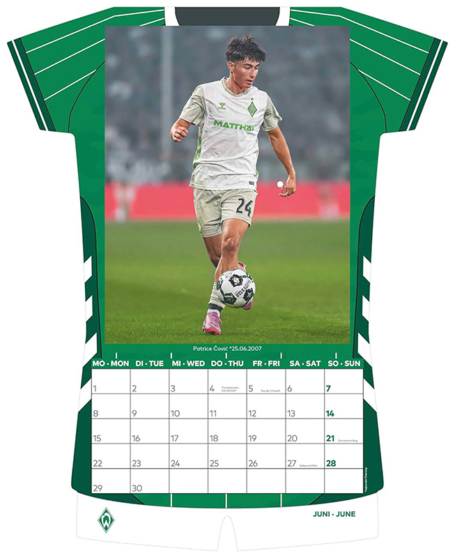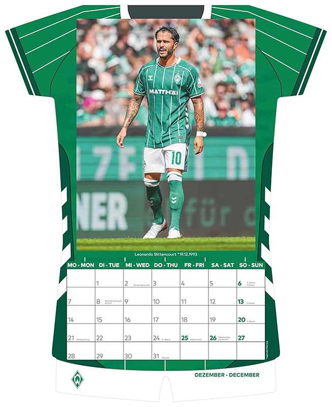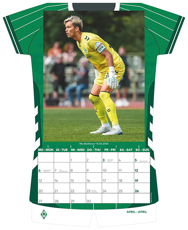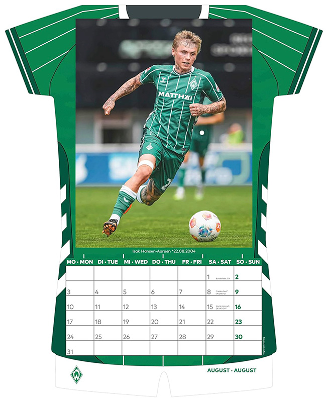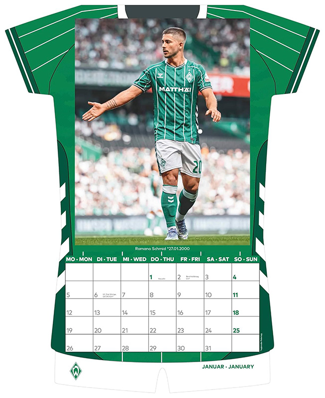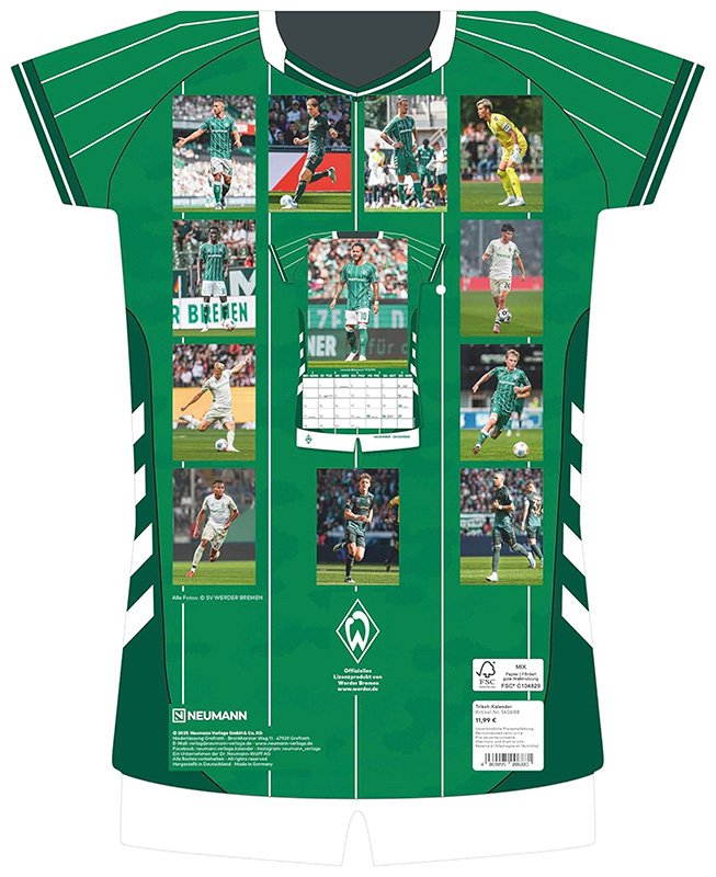 Werder Bremen Trikotkalender - Format 34,1 x 42 cm- 2-sprachiges Kalendarium- Praktische Spiralbindung
