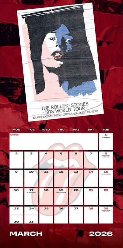 Der praktische Monats-Kalender von Danilo ist zum Aufklappen (30,5 x 30,5 cm, aufgeklappt 30,5 x 61 cm). Er bietet 12 verschiedene, sorgfältig ausgewählte Bilder von der Kultband Rolling Stones sowie Konzert- und Coverabbildungen in Farbe. Das Kalendarium lässt viel Platz für Notizen.